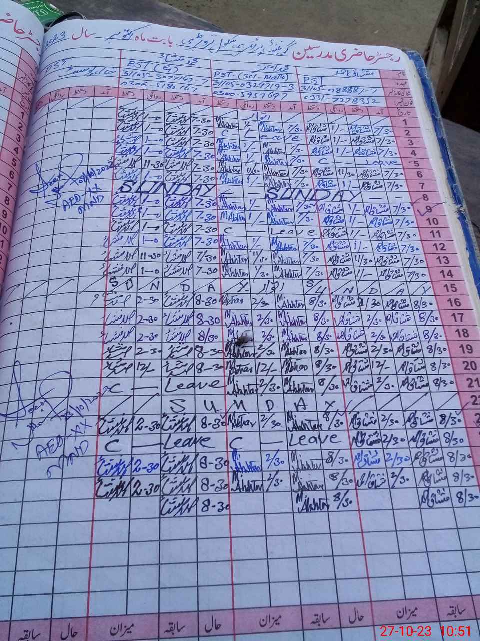 | Name: MU**** AH**** Designation: (School Headmaster's/Headmistress's) PST Phone/Cell Number: 03**** |