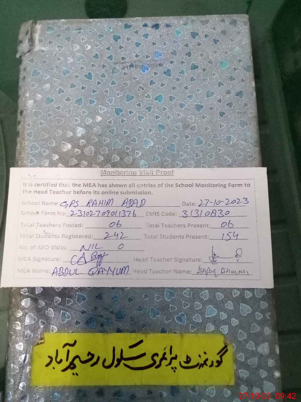 | EMIS Code: 31310830 | Name of School: GPS RAHIM ABAD | |||
