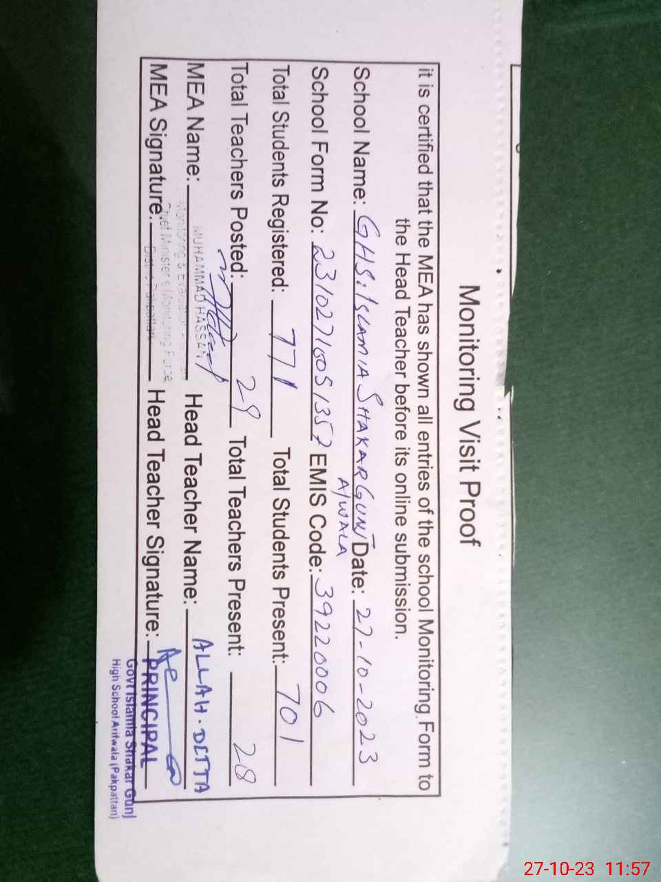 | EMIS Code: 39220006 | Name of School: GHS ISLAMIA SHAKARGUNJ | |||