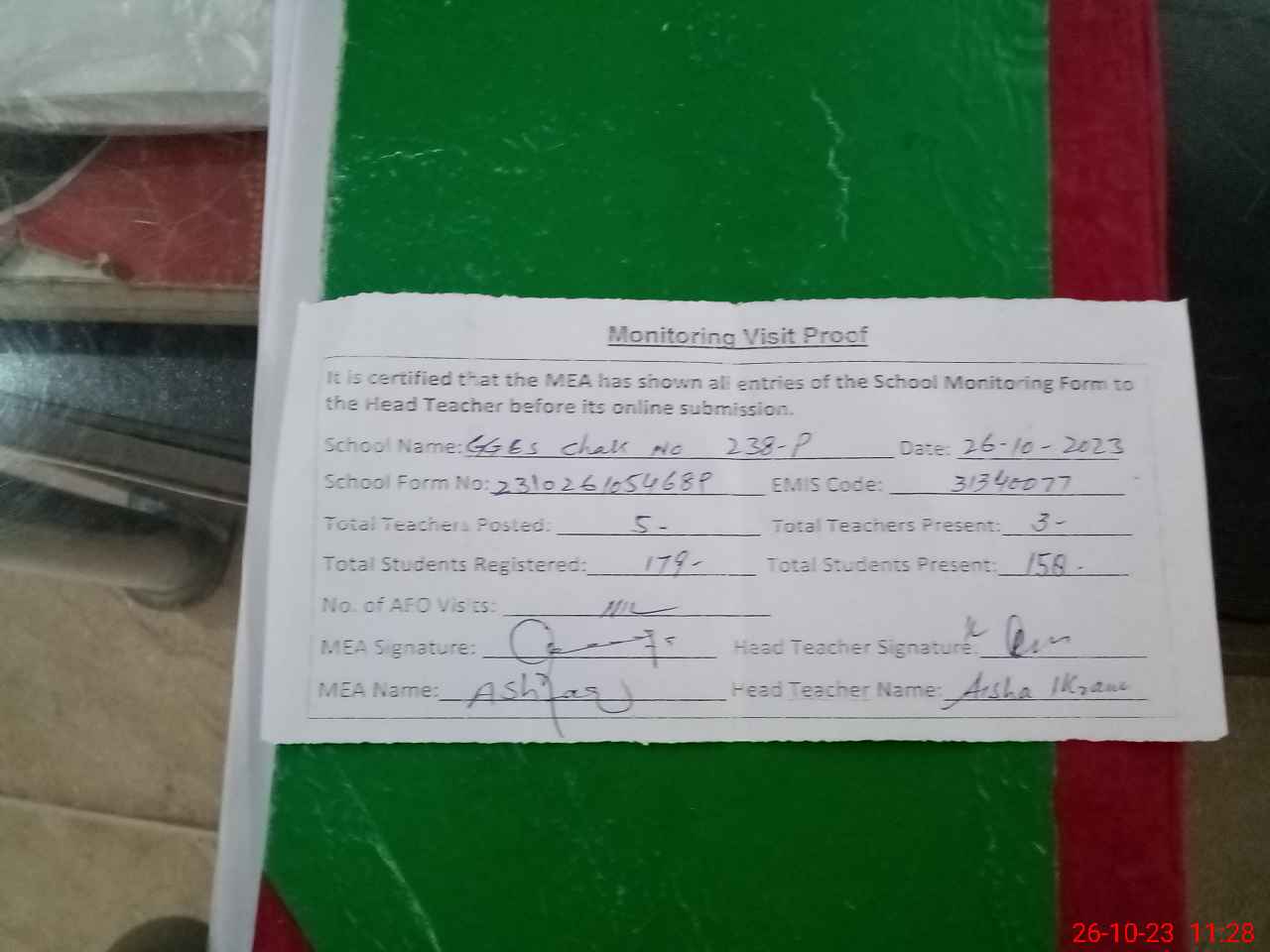 | EMIS Code: 31340077 | Name of School: GGES CHAK 238/P | |||