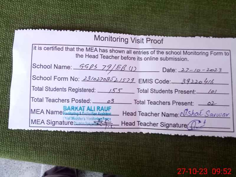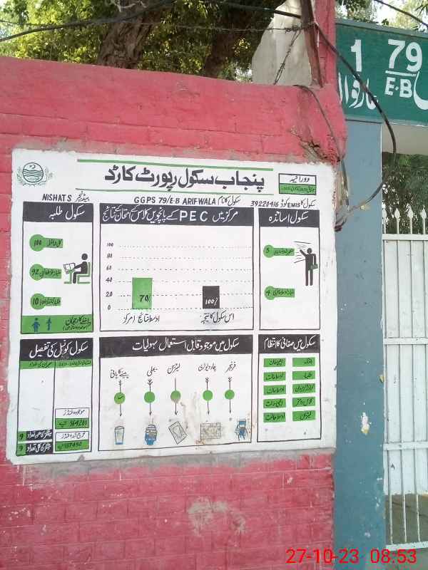 | EMIS Code: 39220416 | Name of School: GGPS 79/EB-I ARIFWALA | |||