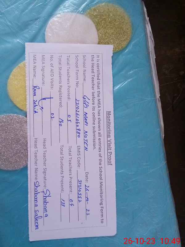 | Certified that this School was Inspected by the Undersigned MEA/DMO Today and the Information Stated Above is as Per Record. | |||||