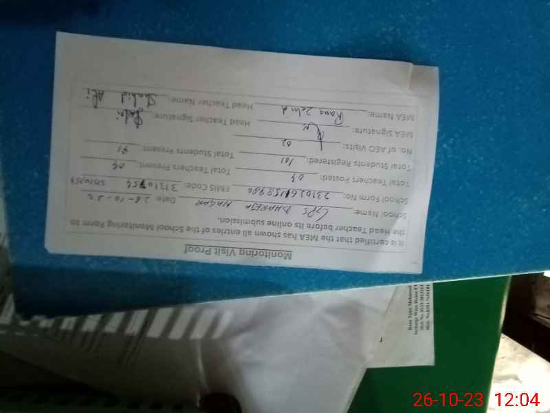 | Certified that this School was Inspected by the Undersigned MEA/DMO Today and the Information Stated Above is as Per Record. | |||||