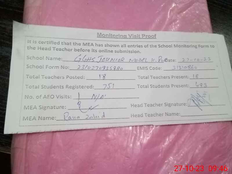 | EMIS Code: 31310860 | Name of School: GGHS JUNIOR MODEL KHANPUR | |||