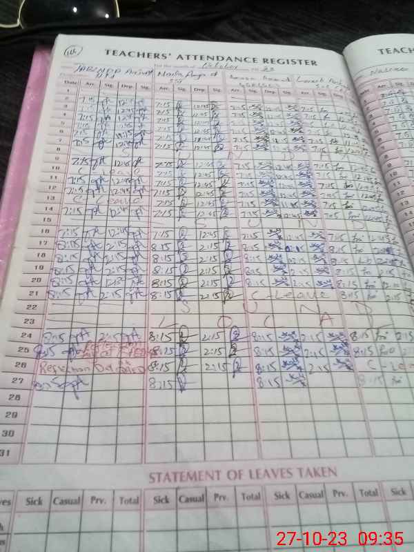 | Total no. of Classrooms: 27 No. of Classrooms Used for Teaching: 23 No. of Classrooms Storing Old Furniture, FTBs, etc: 0Comments if Any: Satisfactory and NSB cash book is not completed from jun 23 to till now toilet are looking poor shoup are also not found at washing points |
