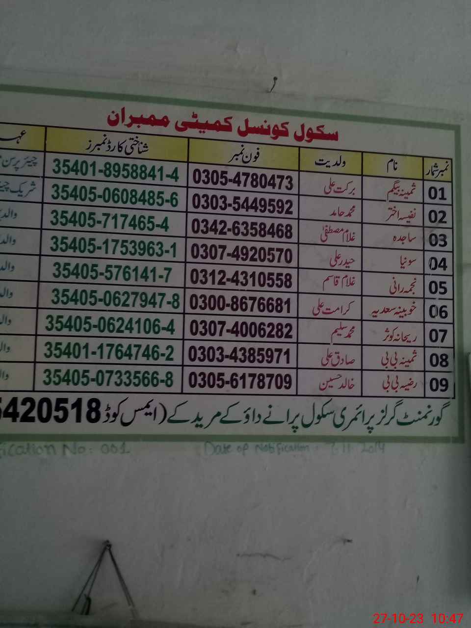 | District: SHEIKHUPURA | Tehsil: MURIDKE | Markaz: MURIDKE-FEMALE | Level: Primary | |
