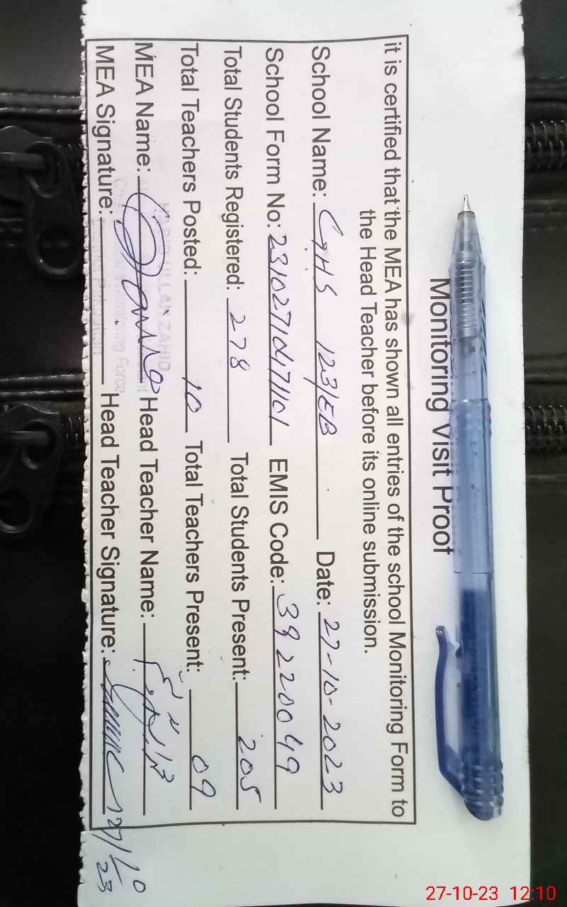 | EMIS Code: 39220049 | Name of School: GHS 123/EB P/O 121/EB ARIF WALA | |||