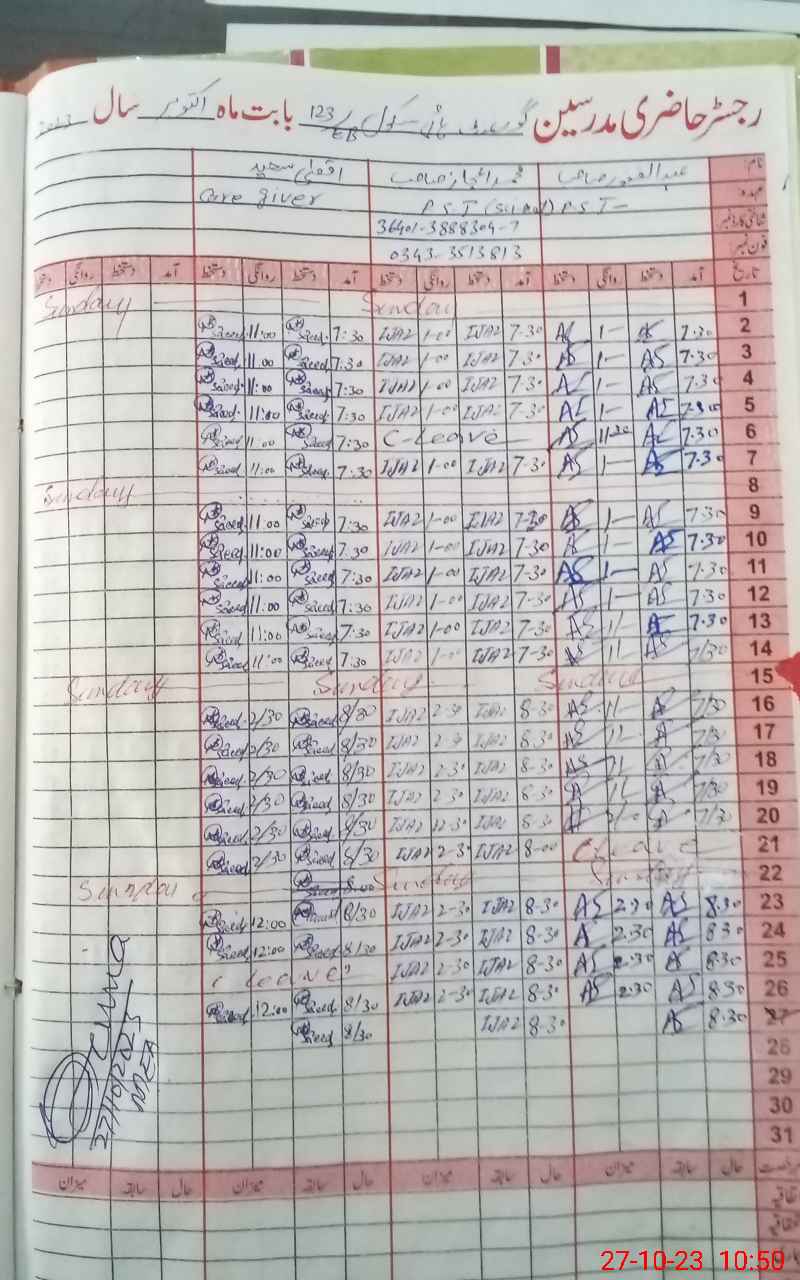 | Name: MU**** AR**** WA**** Designation: (School Headmaster's/Headmistress's) SST ARTS Phone/Cell Number: 03**** |