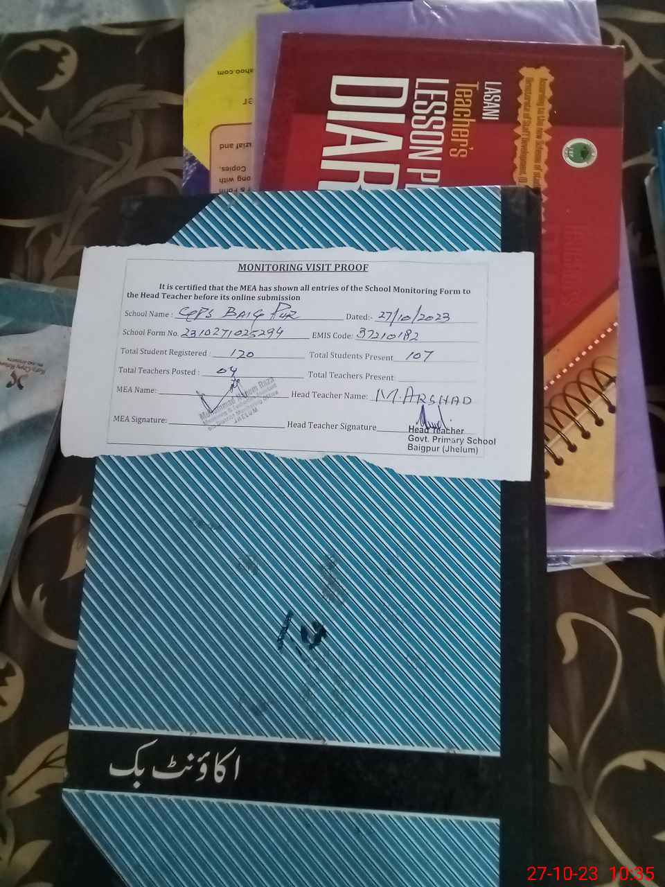 | Attendance Register | Head Teacher | MEA with School | Visit Proof |