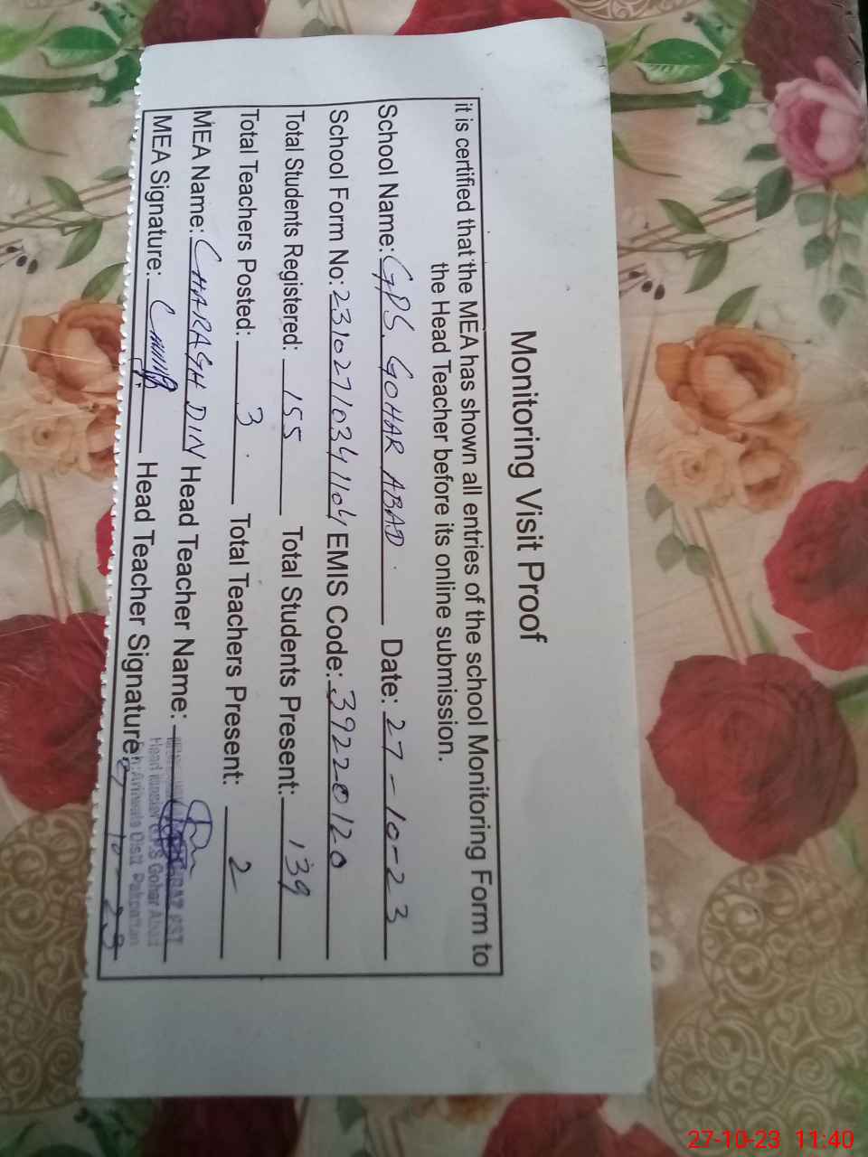 | EMIS Code: 39220120 | Name of School: GPS GOHAR ABAD | |||