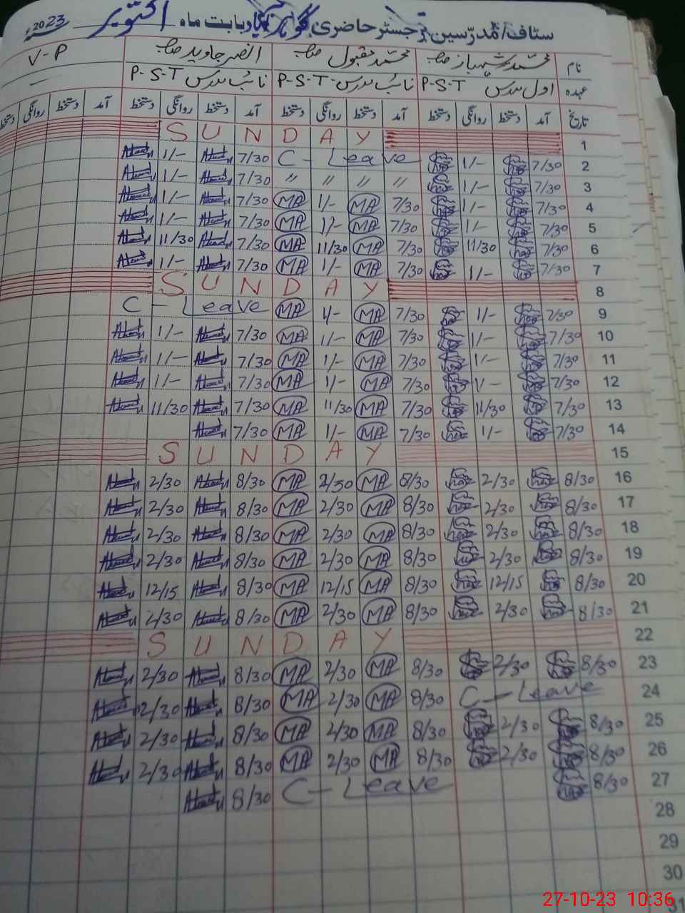 | Name: MU**** SH**** Designation: (School Headmaster's/Headmistress's) PST Phone/Cell Number: 03**** |