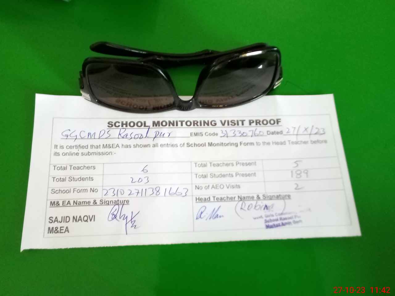 | Attendance Register | Head Teacher | MEA with School | Visit Proof |
