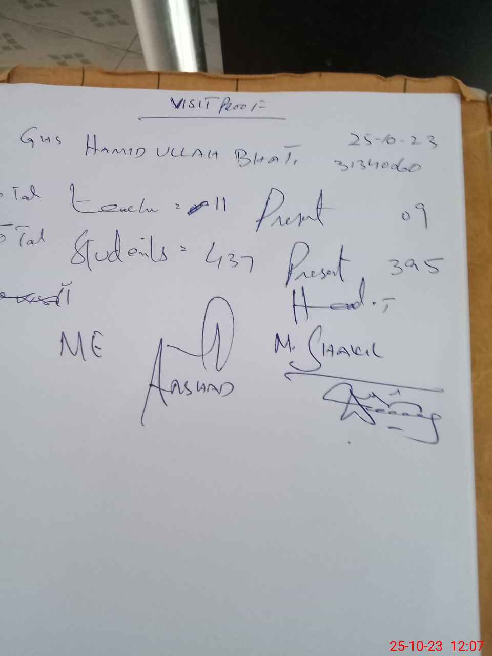 | EMIS Code: 31340060 | Name of School: GHS HAMID ULLAH BHATTI | |||
