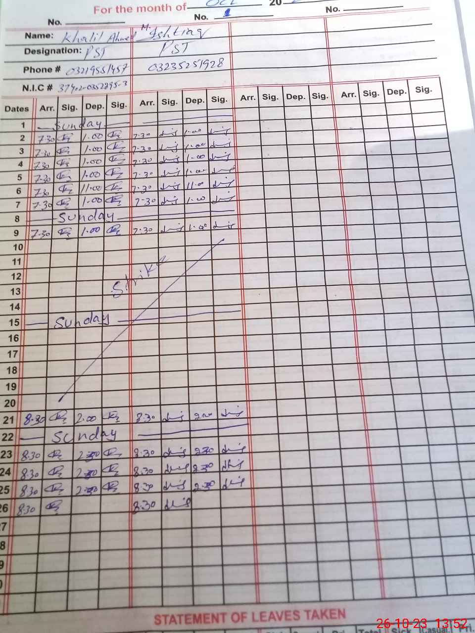 | Name: Kh**** Ah**** Designation: (School Headmaster's/Headmistress's) PST Phone/Cell Number: 03**** |