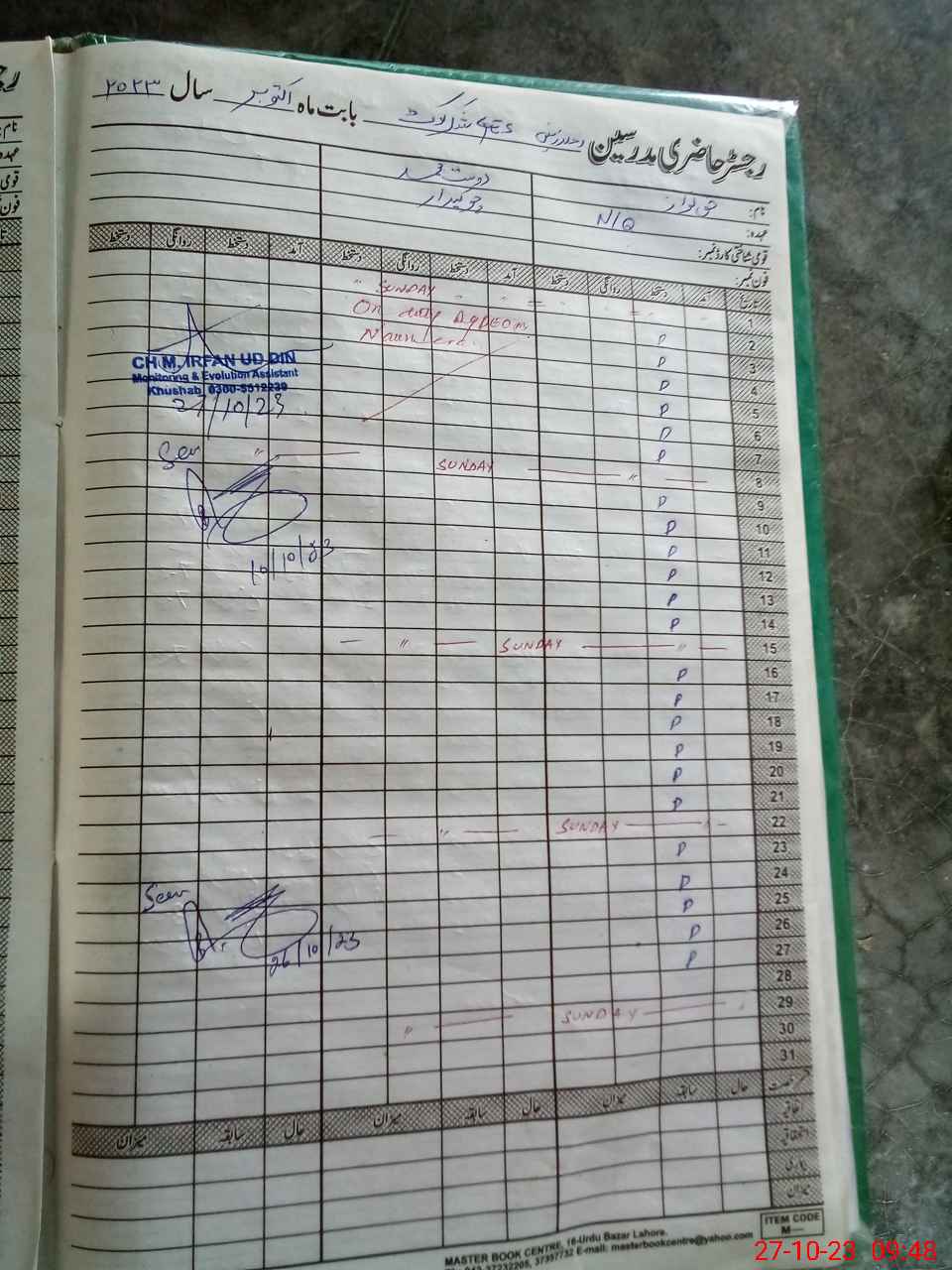 | Attendance Register | Head Teacher | MEA with School | Visit Proof |