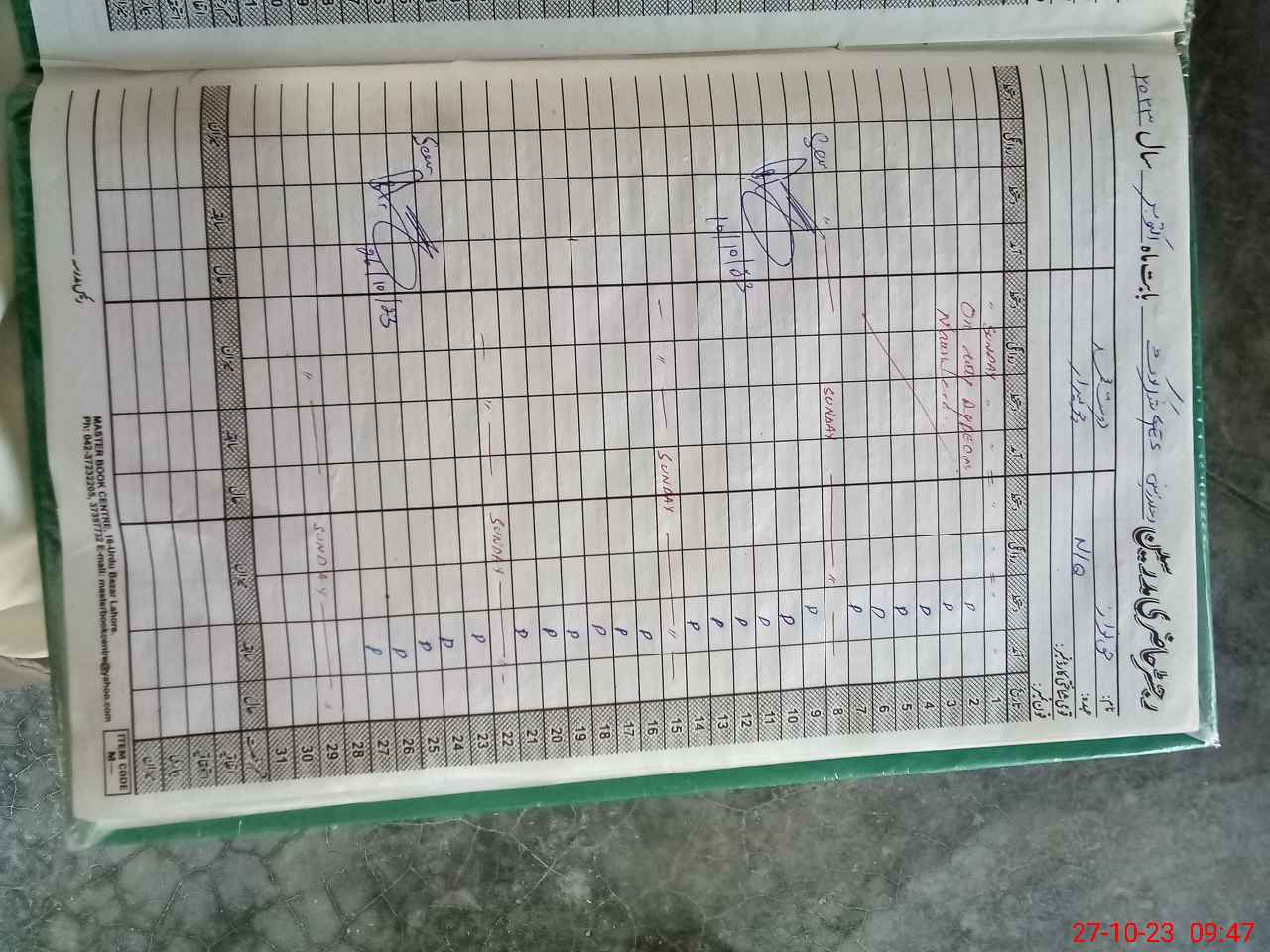 | CNIC | Full Name | Designation | R/C | Absence During Last Calender Month |