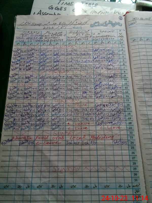 | CNIC | Full Name | Designation | R/C | Absence During Last Calender Month |