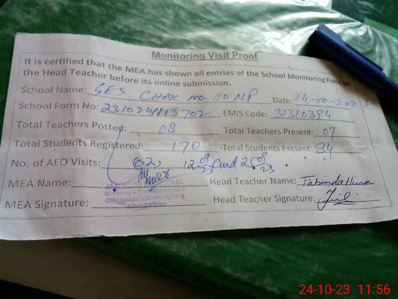 | EMIS Code: 31310394 | Name of School: GGES CHAK 110/NP | |||