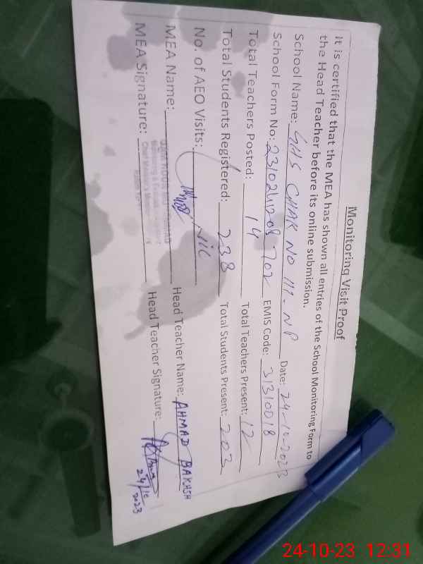 | Certified that this School was Inspected by the Undersigned MEA/DMO Today and the Information Stated Above is as Per Record. | |||||