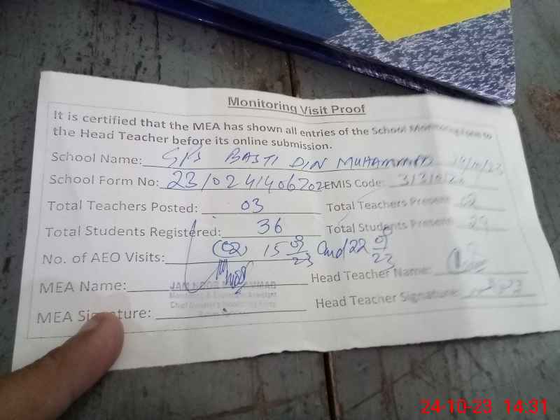 | Certified that this School was Inspected by the Undersigned MEA/DMO Today and the Information Stated Above is as Per Record. | |||||