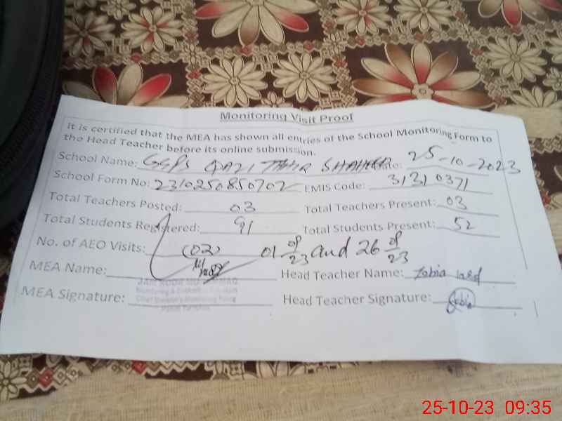 | EMIS Code: 31310371 | Name of School: GGPS QAZI TAHIR SAHEED | |||