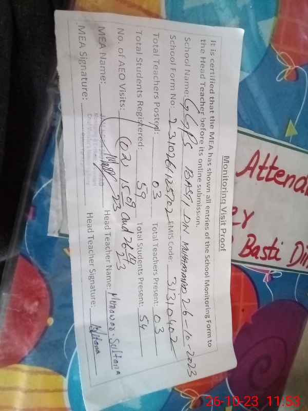 | Certified that this School was Inspected by the Undersigned MEA/DMO Today and the Information Stated Above is as Per Record. | |||||
