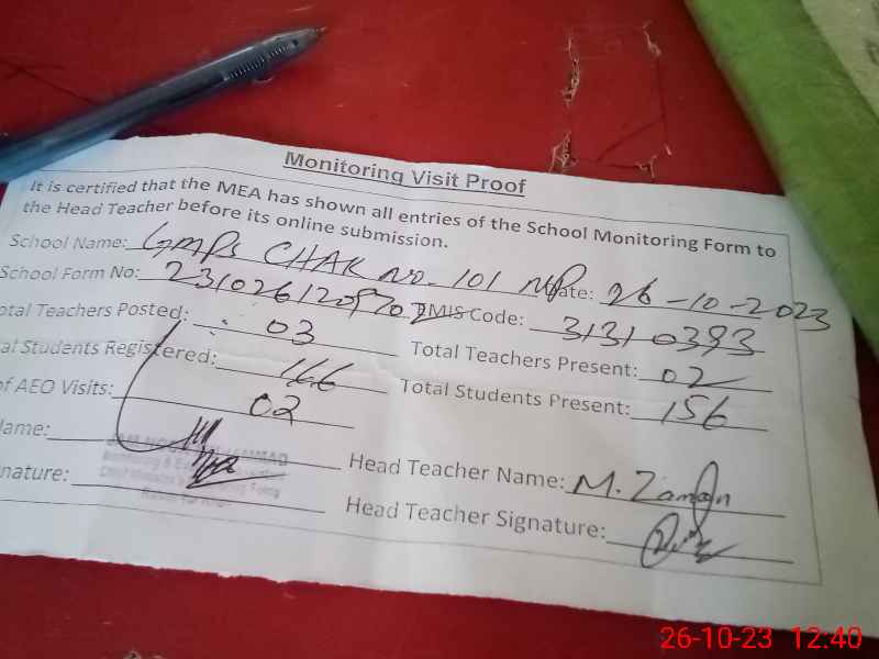 | Certified that this School was Inspected by the Undersigned MEA/DMO Today and the Information Stated Above is as Per Record. | |||||