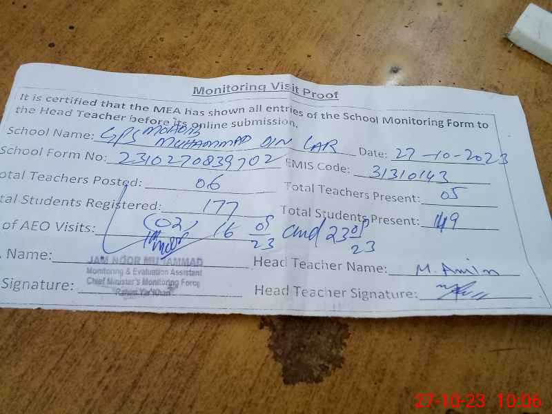 | Certified that this School was Inspected by the Undersigned MEA/DMO Today and the Information Stated Above is as Per Record. | |||||