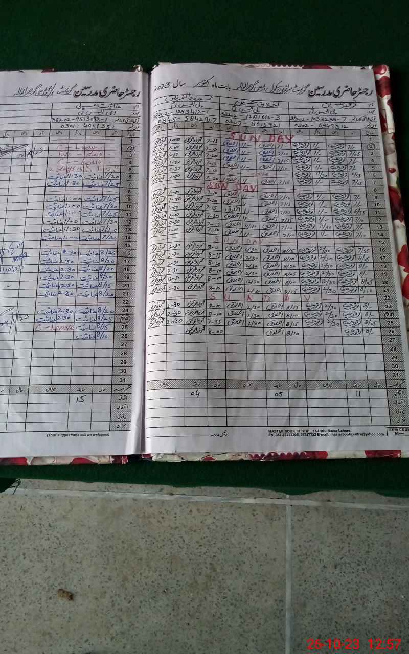 | CNIC | Full Name | Designation | R/C | Absence During Last Calender Month |