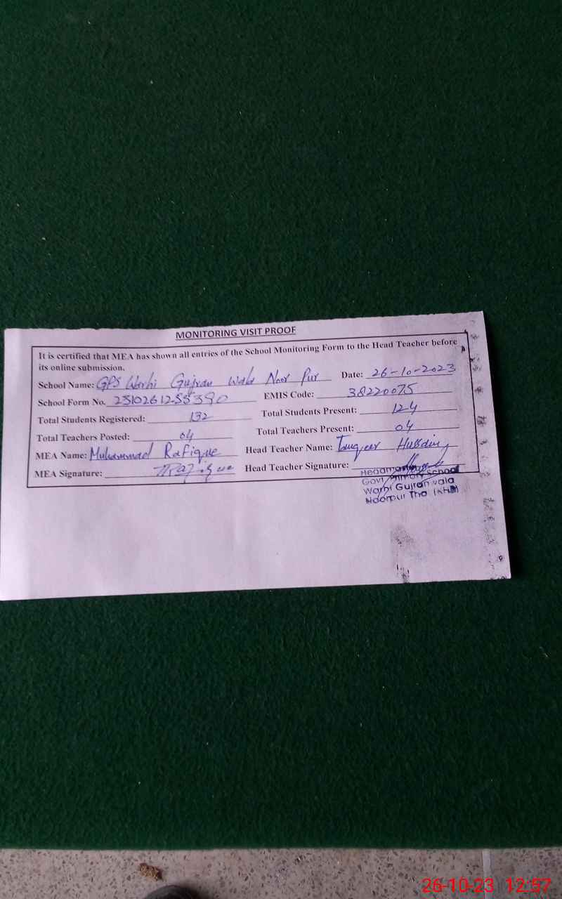 | EMIS Code: 38220075 | Name of School: GPS WARHI GUJRAN WALA | |||