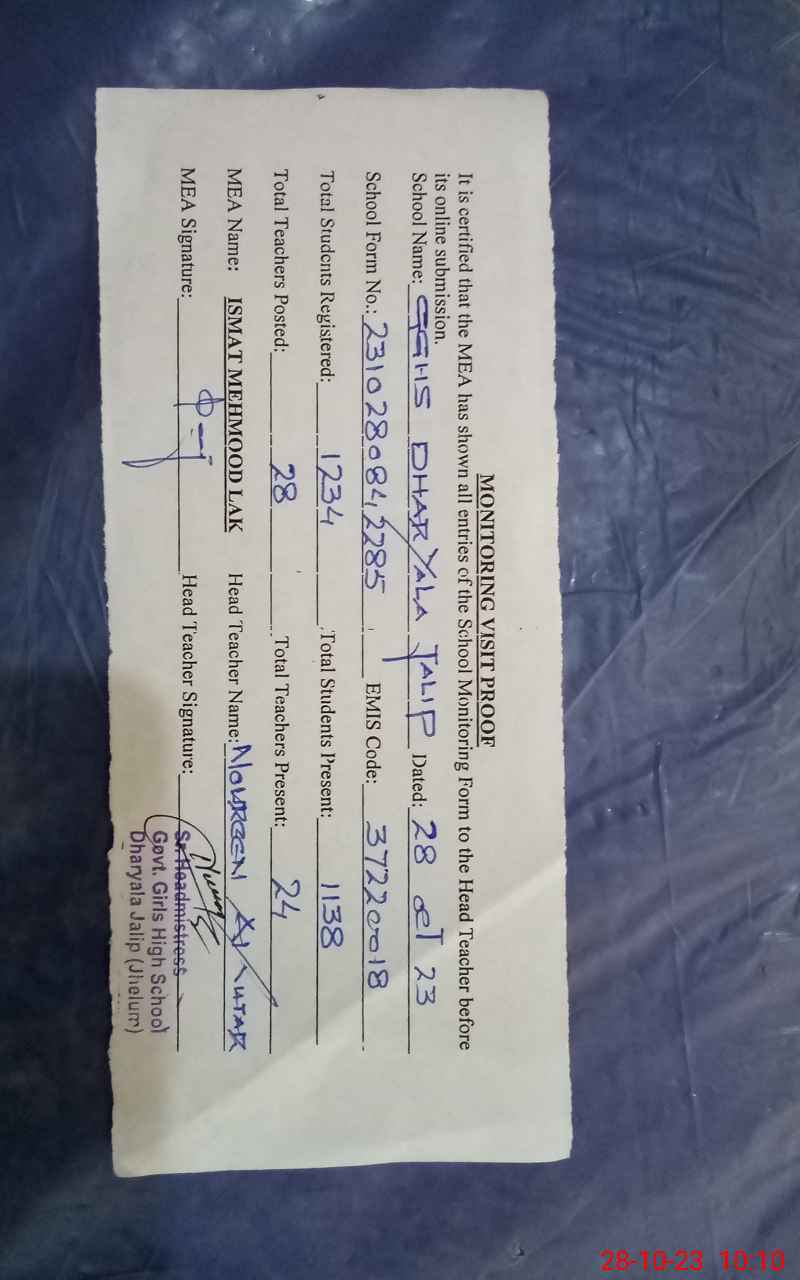 | EMIS Code: 37220018 | Name of School: GGHS DHARIALA JALIB | |||