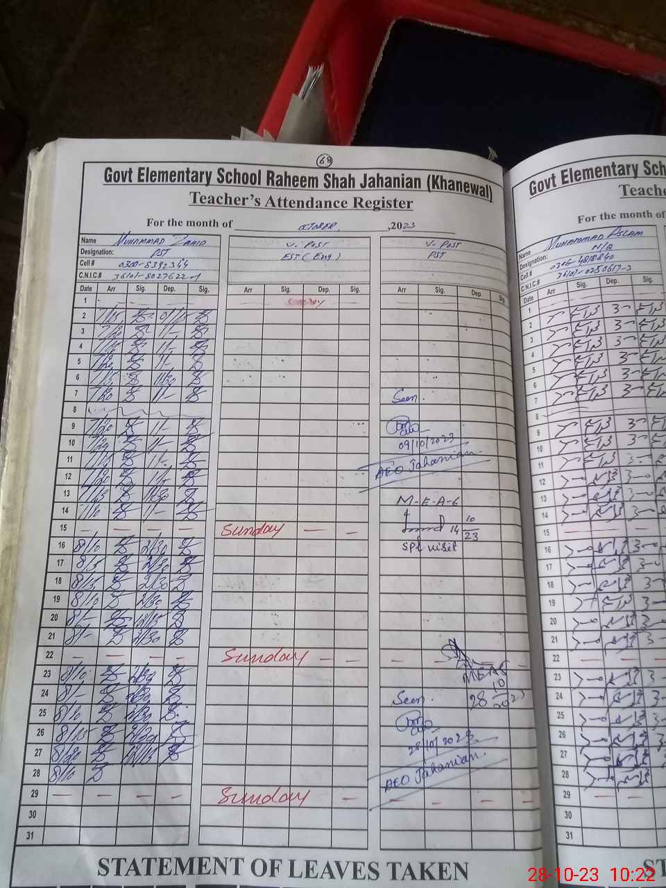 | Name: SH**** IQ**** Designation: (School Headmaster's/Headmistress's) SST(G) Phone/Cell Number: 03**** |