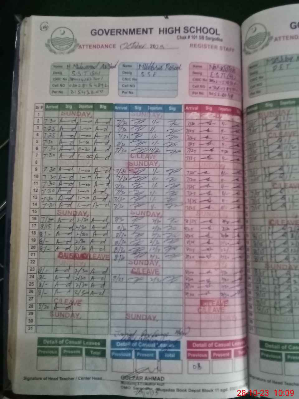 | CNIC | Full Name | Designation | R/C | Absence During Last Calender Month |