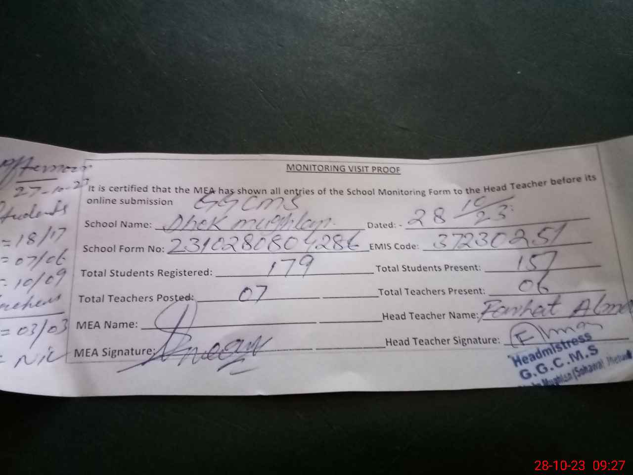 | EMIS Code: 37230251 | Name of School: GGCMS DHOK MUGHLAN | |||