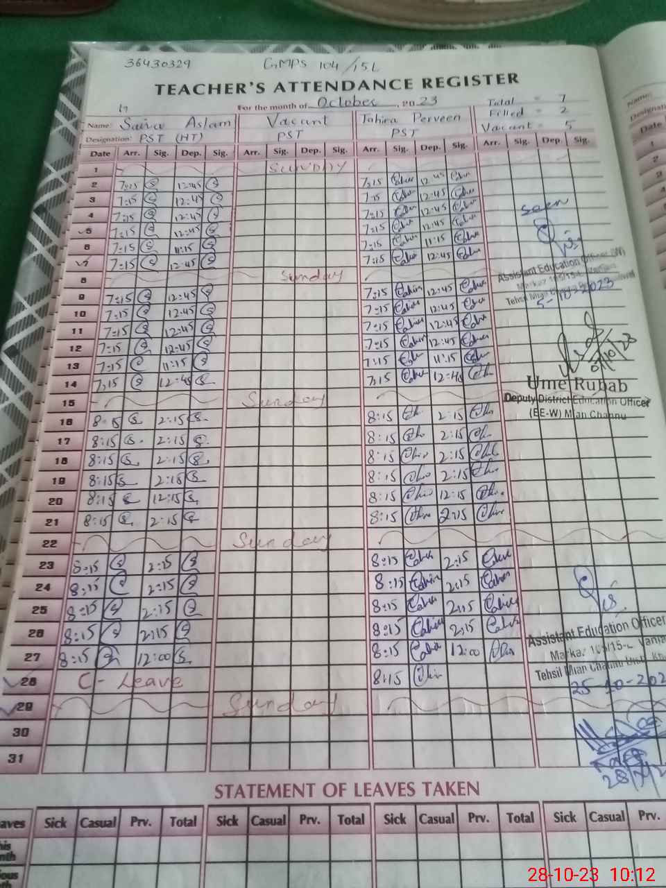 | Name: Sa**** As**** Designation: (School Headmaster's/Headmistress's) PST Phone/Cell Number: 03**** |
