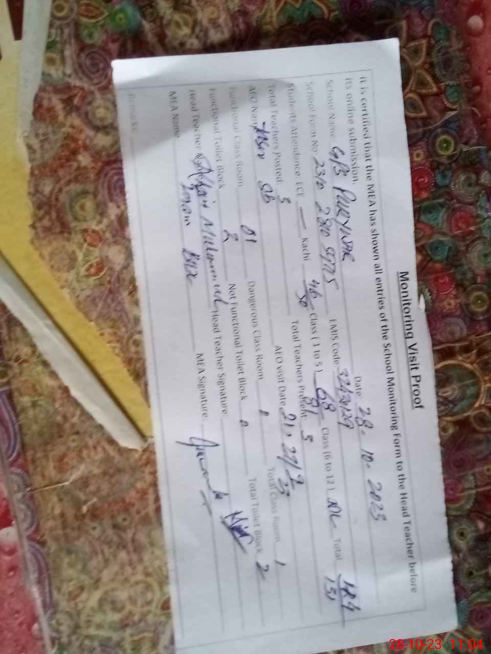 | Certified that this School was Inspected by the Undersigned MEA/DMO Today and the Information Stated Above is as Per Record. | |||||