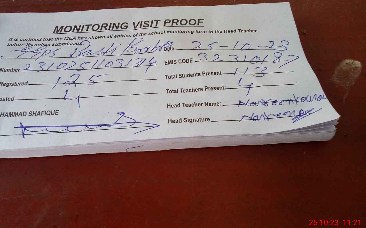 | Attendance Register | Head Teacher | MEA with School | Visit Proof |