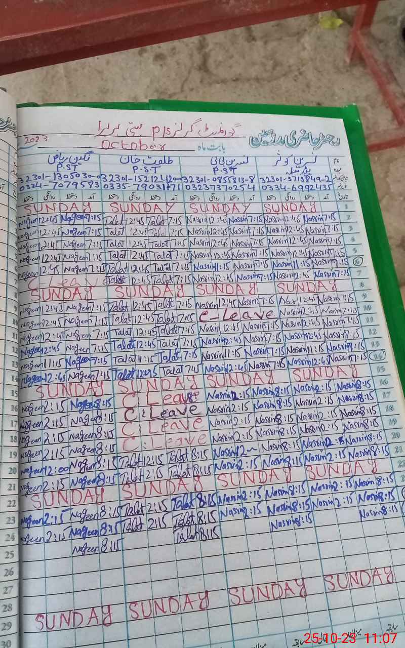 | CNIC | Full Name | Designation | R/C | Absence During Last Calender Month |