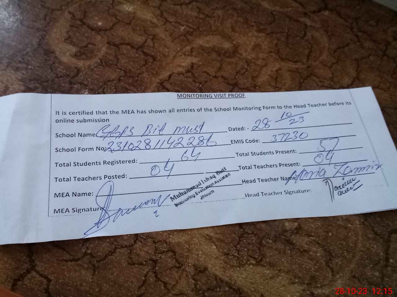 | EMIS Code: 37230285 | Name of School: GGPS BIT MAST | |||