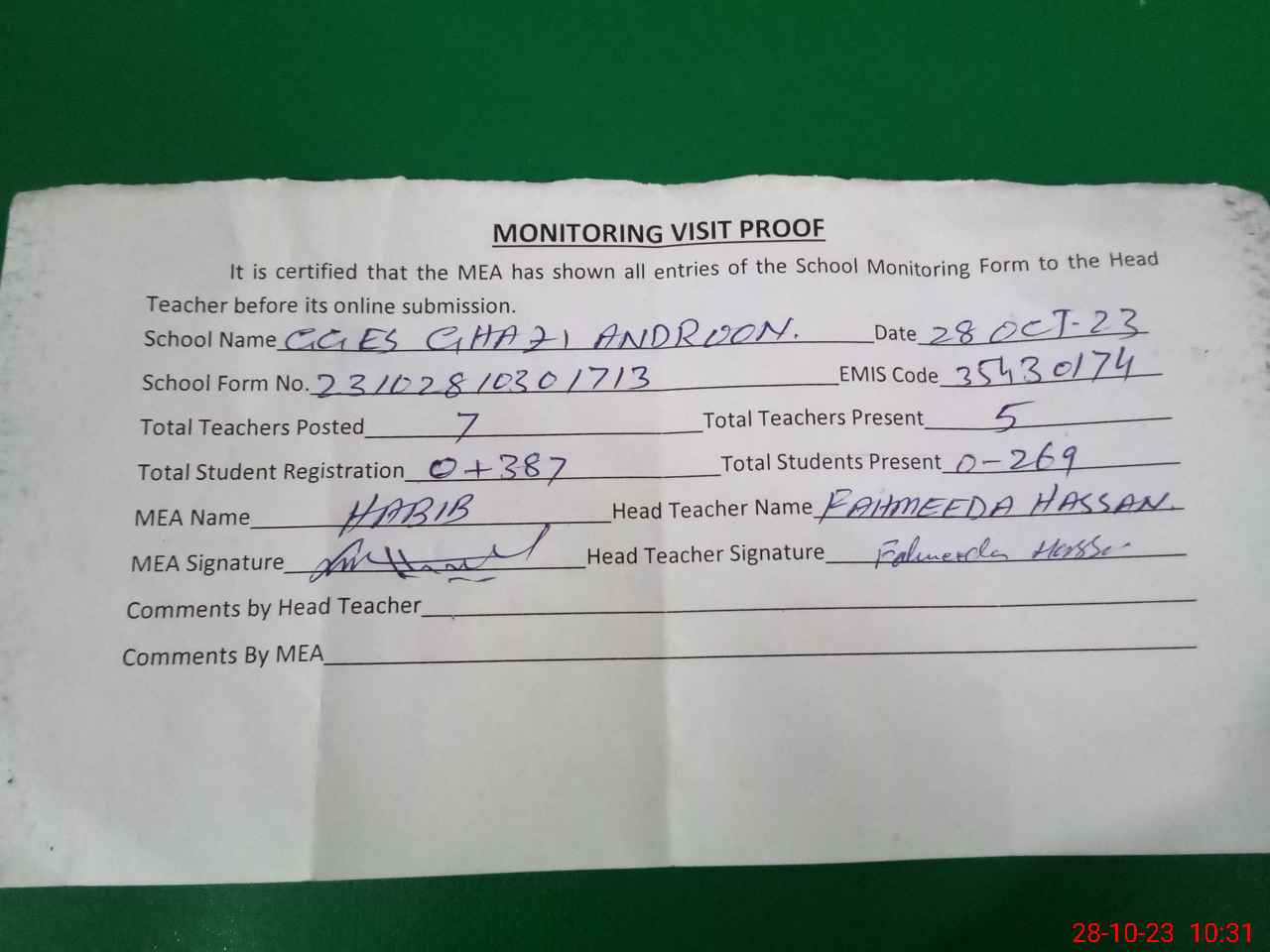 | EMIS Code: 35430174 | Name of School: GGES GHAZI ANDROON | |||