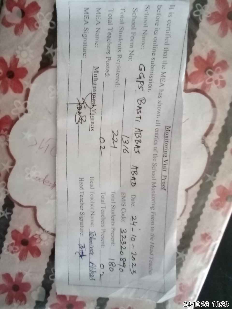 | EMIS Code: 32320890 | Name of School: GGPS BASTI ABBAS ABAD | |||
