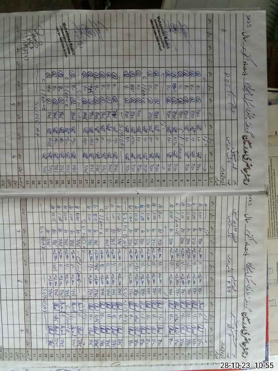 | CNIC | Full Name | Designation | R/C | Absence During Last Calender Month |