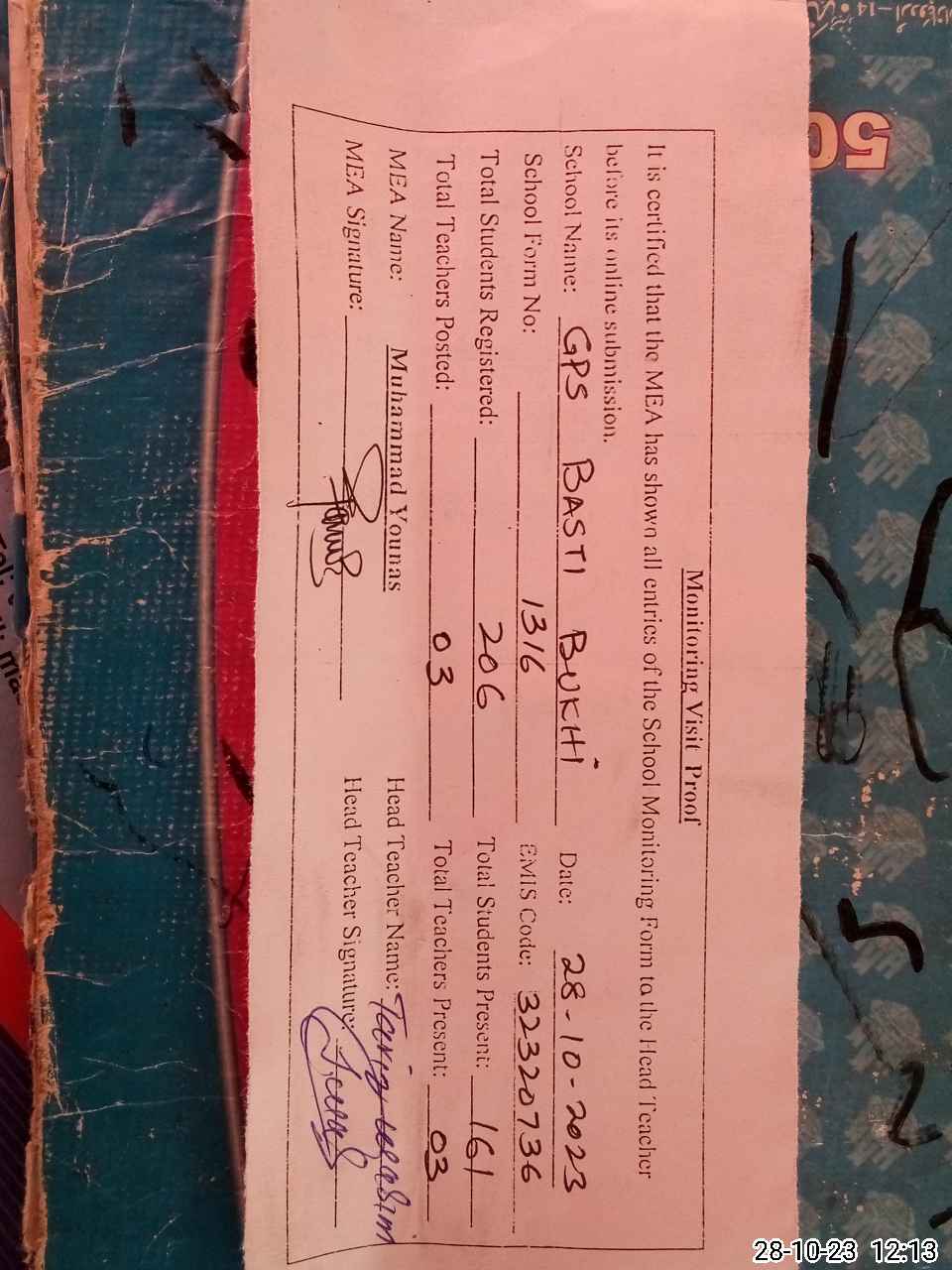 | Attendance Register | Head Teacher | MEA with School | Visit Proof |