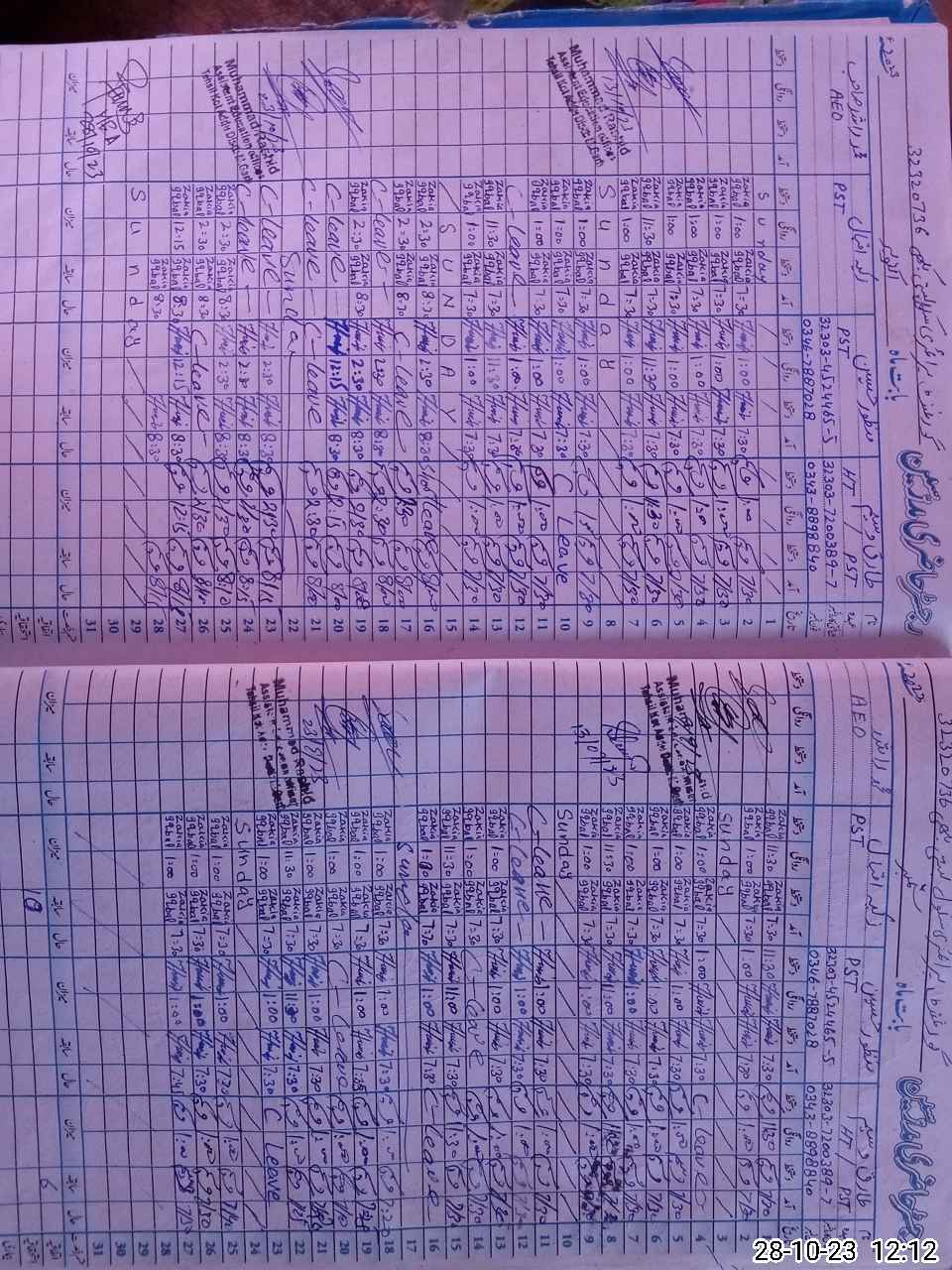 | CNIC | Full Name | Designation | R/C | Absence During Last Calender Month |