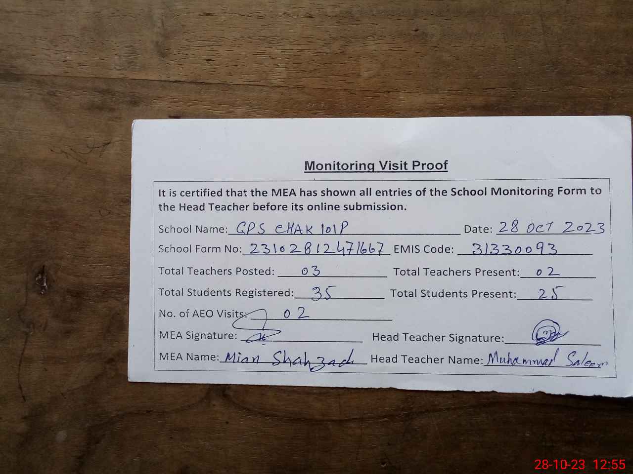 | EMIS Code: 31330093 | Name of School: GPS CHAK 101/P | |||