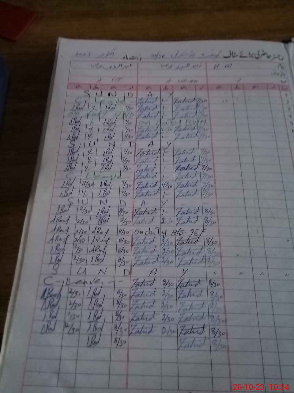 | CNIC | Full Name | Designation | R/C | Absence During Last Calender Month |