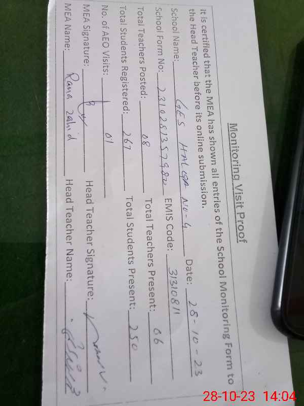 | EMIS Code: 31310811 | Name of School: GES HALQA NO 4 | |||