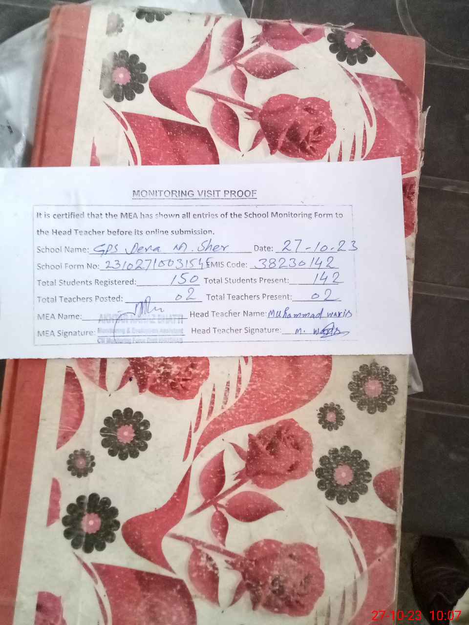 | EMIS Code: 38230142 | Name of School: GPS DERA MUHAMMAD SHER | |||