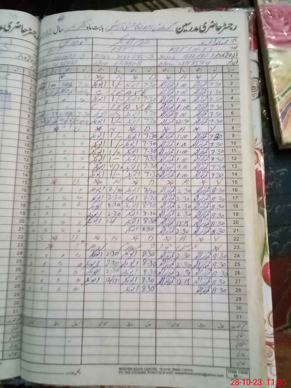 | CNIC | Full Name | Designation | R/C | Absence During Last Calender Month |