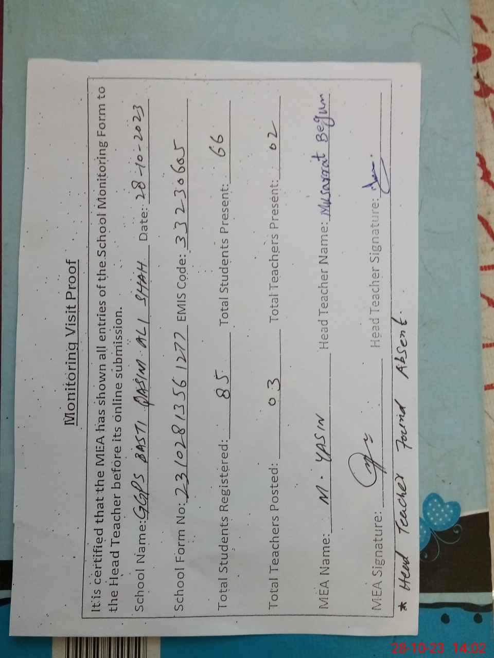 | EMIS Code: 33230605 | Name of School: GGPS BASTI QASIM ALI SHAH | |||